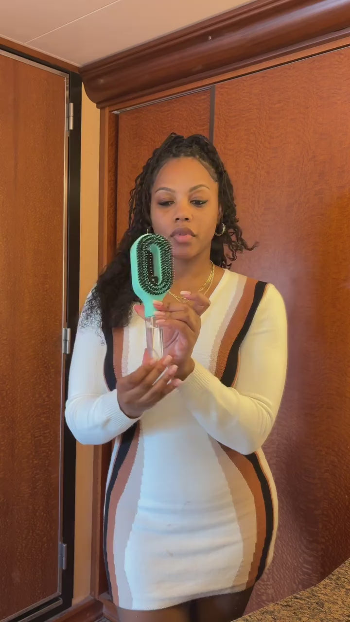 Ce peigne 2-en-1 est l'outil idéal pour les nœuds tenaces. L'action combinée de l'humidité et des dents ergonomiques permet de glisser sans casser la fibre capillaire. Que vous ayez les cheveux bouclés, épais ou fins, il démêle en douceur tout en minimisant la casse pour des cheveux plus forts.